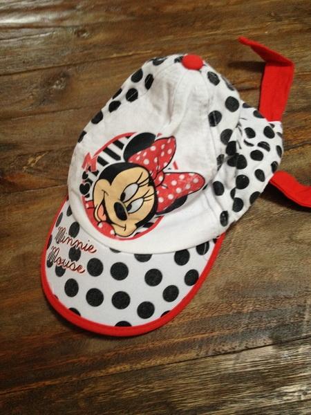 Minnie Mouse kšiltovka, dost nošená, tisk už není 100%, malinko je odřený, ale stále je moc pěkná, regulace je na mašličku.